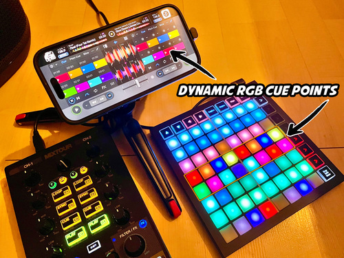 Explore a tailored MIDI mapping for the Novation Launchpad Mini MK3, featuring dynamic RGB pad colors that mirror your cue point color assignments in djay Pro. The detailed mapping chart (Excel file) and the corresponding djay Pro configuration file are available directly in this GitHub directory: https://github.com/VNAelectro/djay-pro-novation-launchpad-mini-mk3.